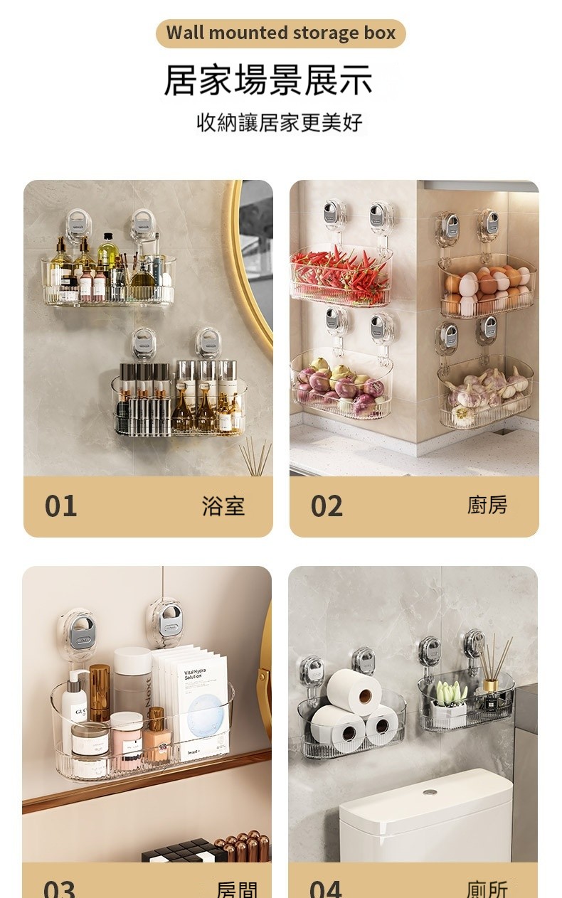 11分鐘前桌上总是乱糟糟?试试這個 #免打孔吸盤置物架 免鑽孔不傷牆!隨心換位不留痕!乾淨整潔收納無拘束! - 【均價319】五入組NT$1599