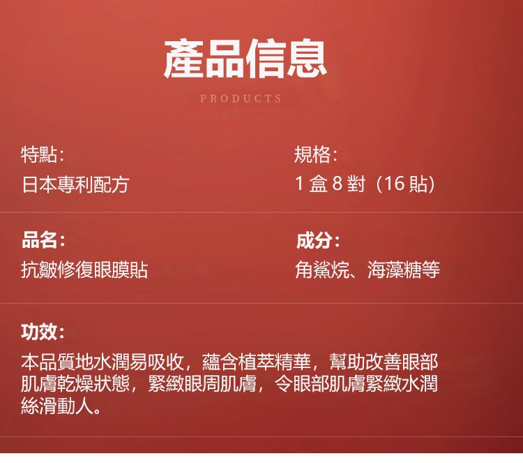 25分鐘前每晚貼一貼,輕鬆淡化眼紋、眼袋,多買多送,僅限今天!免費包郵,不滿意直接退!快下單試試吧,用了你不會後悔! - 【官網限定】1入組NT$990(8對16貼體驗裝)