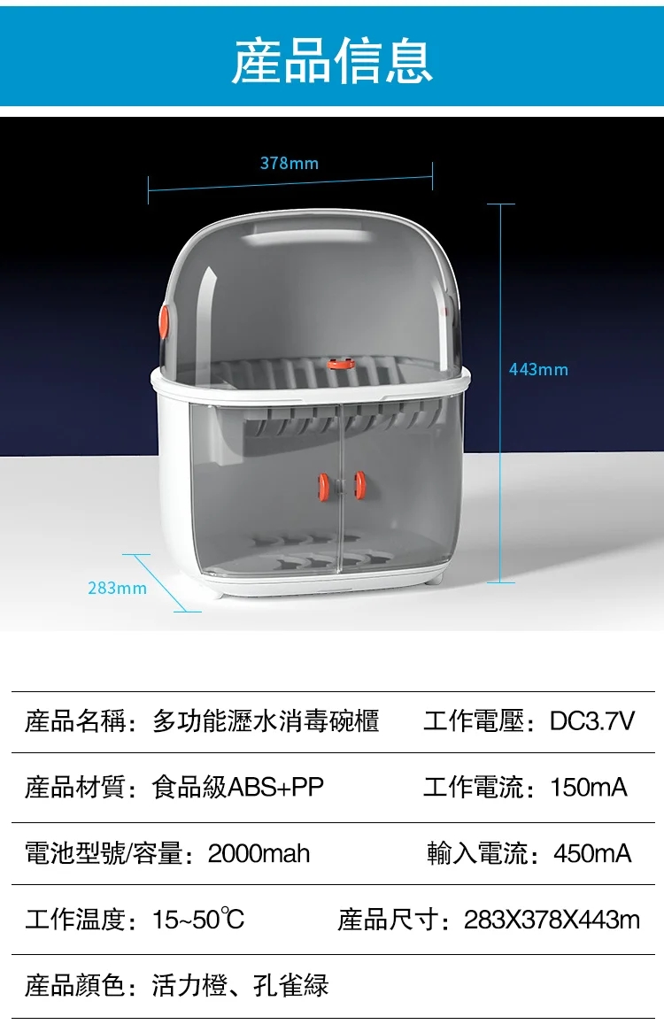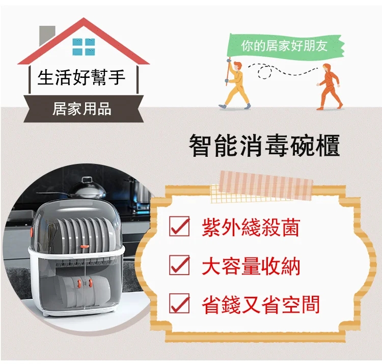 2分鐘前智能家用碗碟收納瀝水紫外線消毒密封雙層碗櫃 - 一入組NT$1398 NT$ 1398