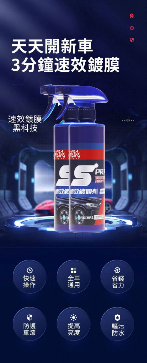 4分鐘前速效汽車鍍膜劑,去污+鍍膜,3分鐘養護漆面光亮如新,所有車色可用!鍍膜防護一瓶搞定!限時折扣 ! - 【特惠三入組】NT$998