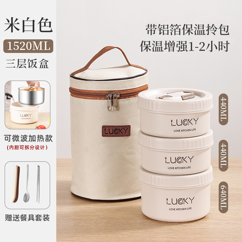 4分鐘前日式便攜保溫飯盒送餐具套餐 - 可微波【三個裝】+勺筷+保溫提包NT$1260
