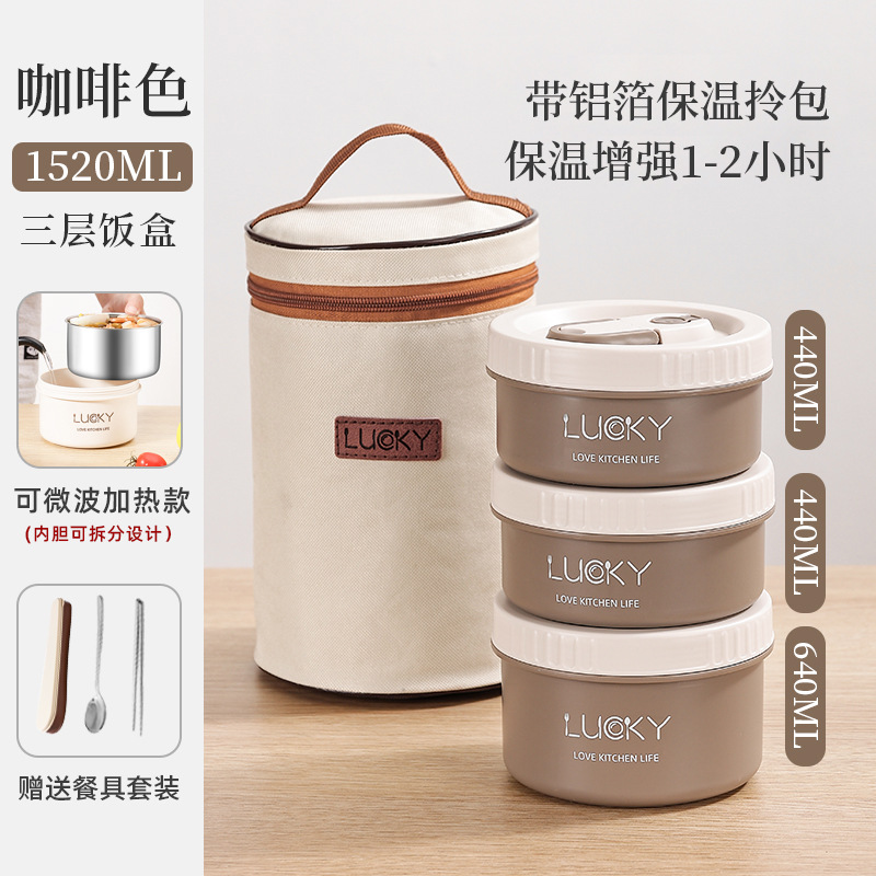 2分鐘前日式便攜保溫飯盒送餐具套餐 - 不可微波【三個裝】+勺筷+保溫提包NT$1060