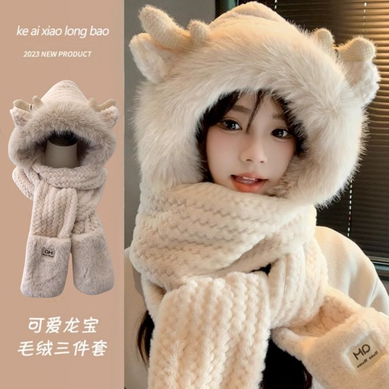 11分鐘前【熱銷免運】新款可愛帽子圍巾一體女冬季連帽圍脖加厚保暖毛絨三件套騎車 毛線帽 針織帽 毛帽 小熊造型 可愛毛帽 - 【狂殺特賣】團購三入組$1399