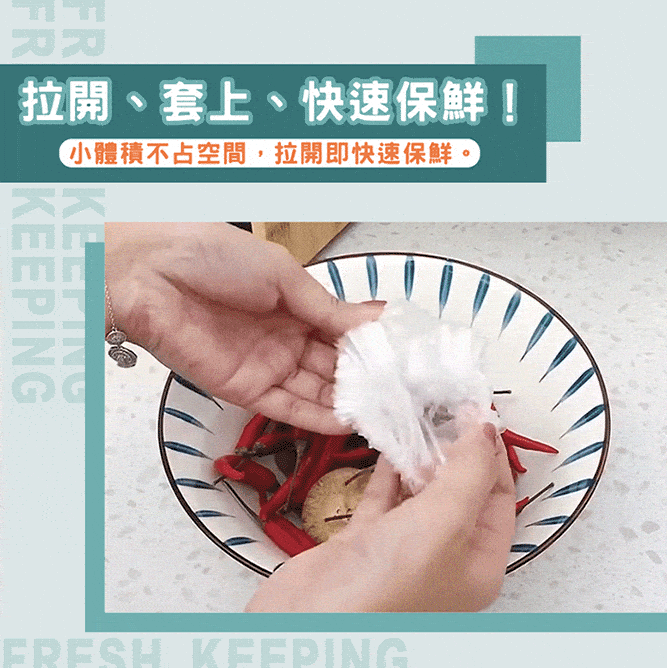 半小時前新款保鮮膜套 食品級材質,彈力縮口,任何大小、形狀都能輕鬆套上,保鮮不跑味,方便快速,乾淨衛生,廚房必備好物! - 今日限定:八入組(800個)NT$1099(96%客戶的選擇)再贈送驚喜禮品一份!-NT$1099