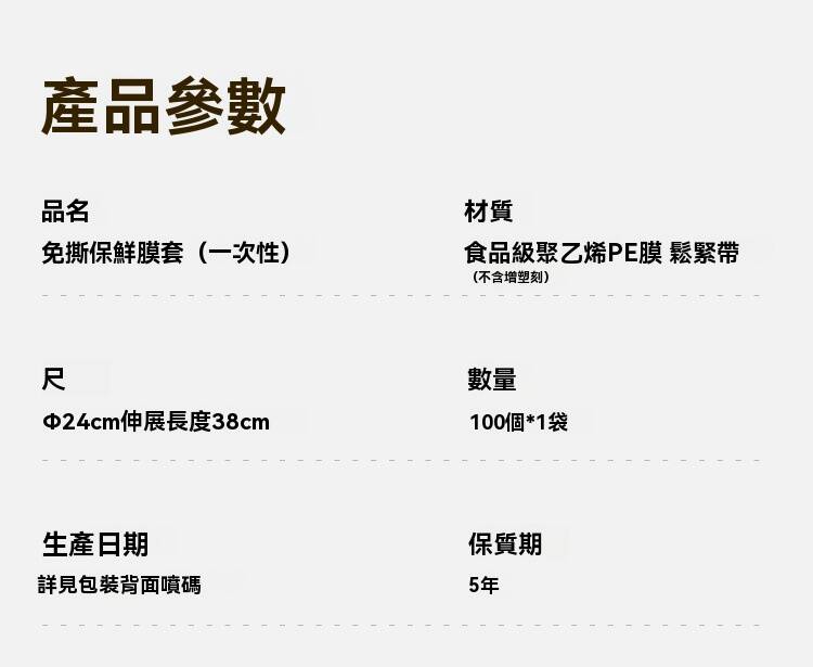 2分鐘前新款保鮮膜套 食品級材質,彈力縮口,任何大小、形狀都能輕鬆套上,保鮮不跑味,方便快速,乾淨衛生,廚房必備好物! - 超夯特惠:五入組(500個)NT$998 再贈送驚喜禮品一份!-NT$998