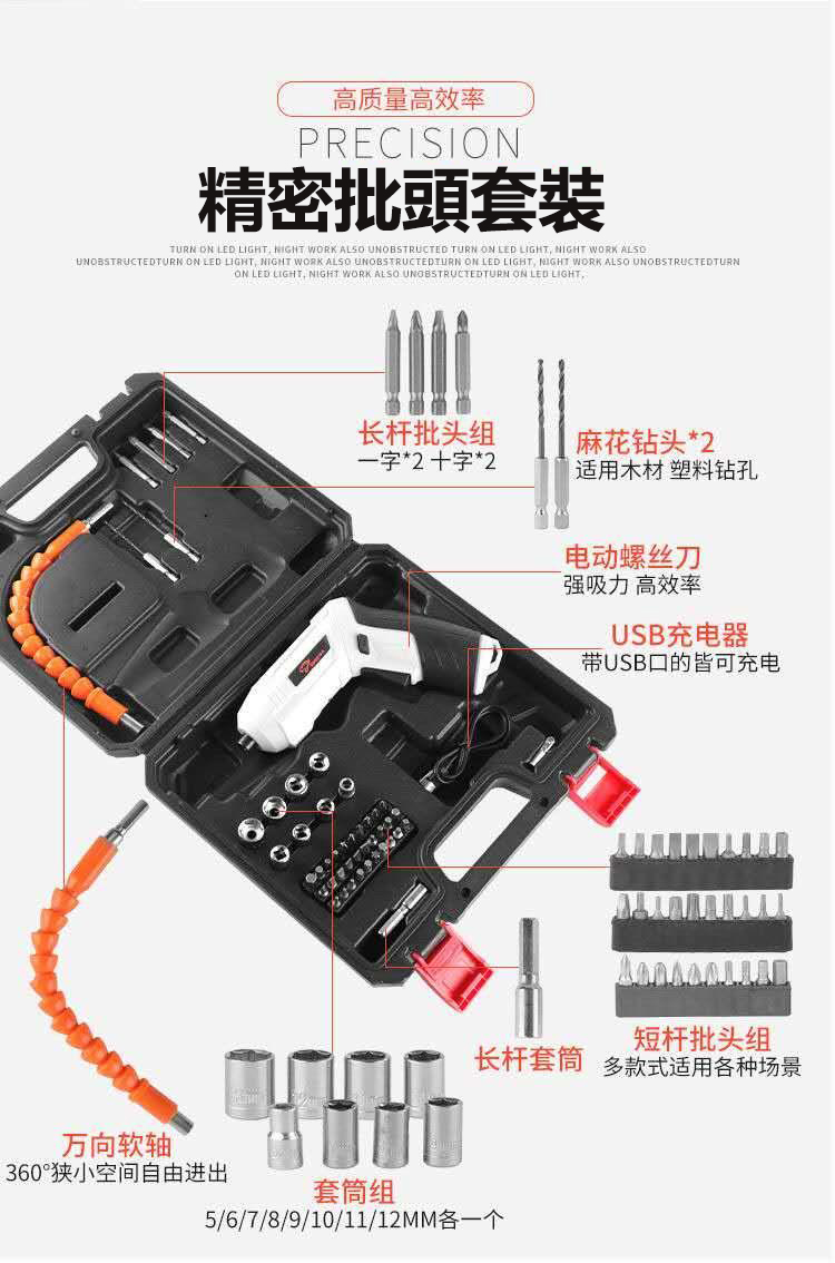 12分鐘前電動螺絲刀充電多功能家用小型螺絲批迷妳電起子槍鋰電手電鉆工具 - 經典-全能【47套裝】工具箱裝