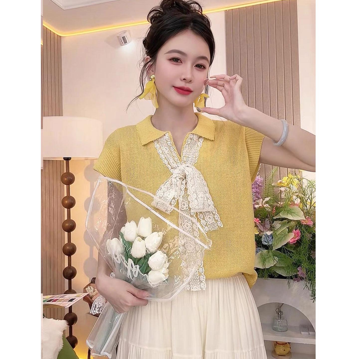 15分鐘前【台灣出貨】火爆折扣中!夏裝新款蕾絲拼接蝴蝶結冰絲針織衫 - 【四入組】任選4件 NT$ 1380