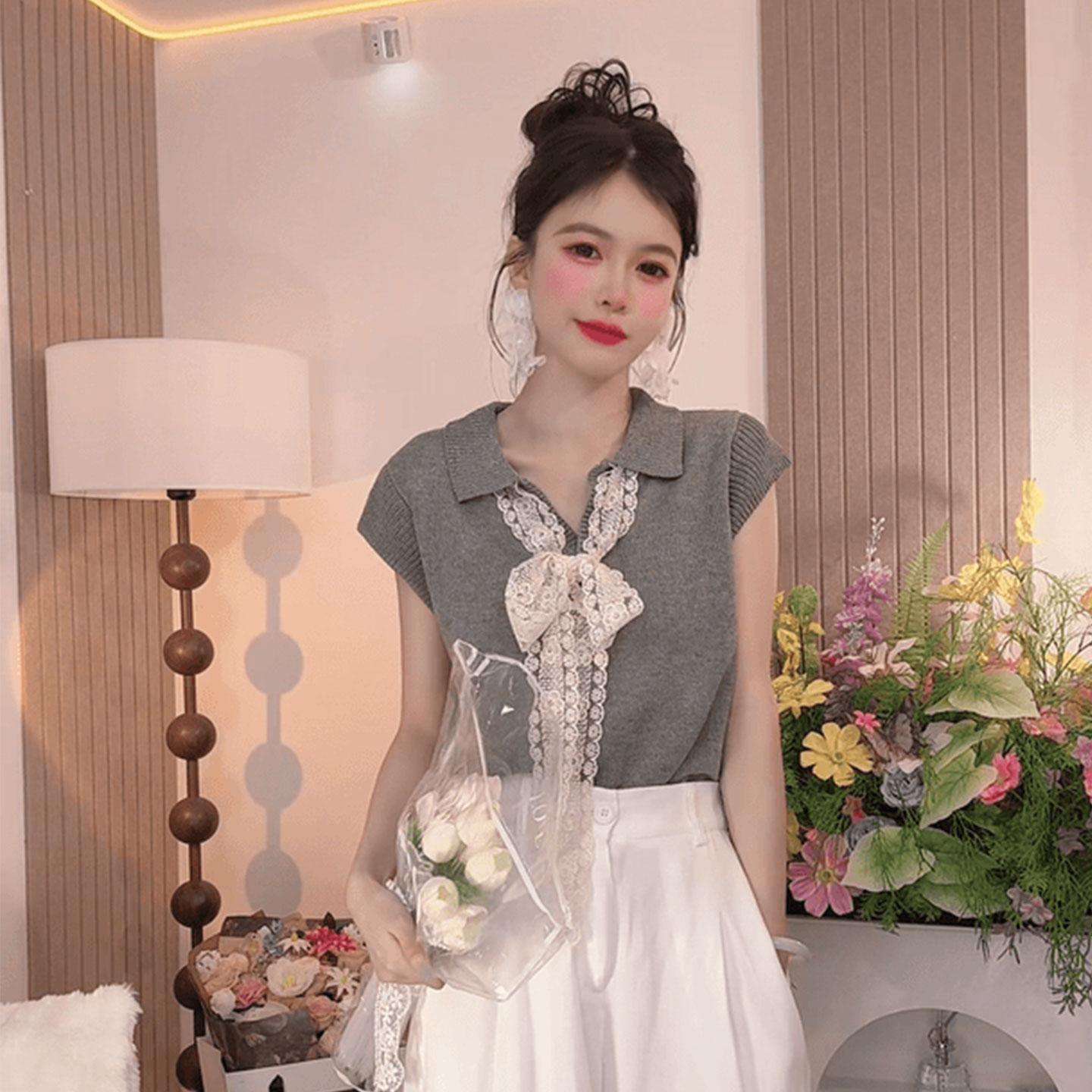5分鐘前【台灣出貨】火爆折扣中!夏裝新款蕾絲拼接蝴蝶結冰絲針織衫 - 【三入組】任選3件 NT$ 1080