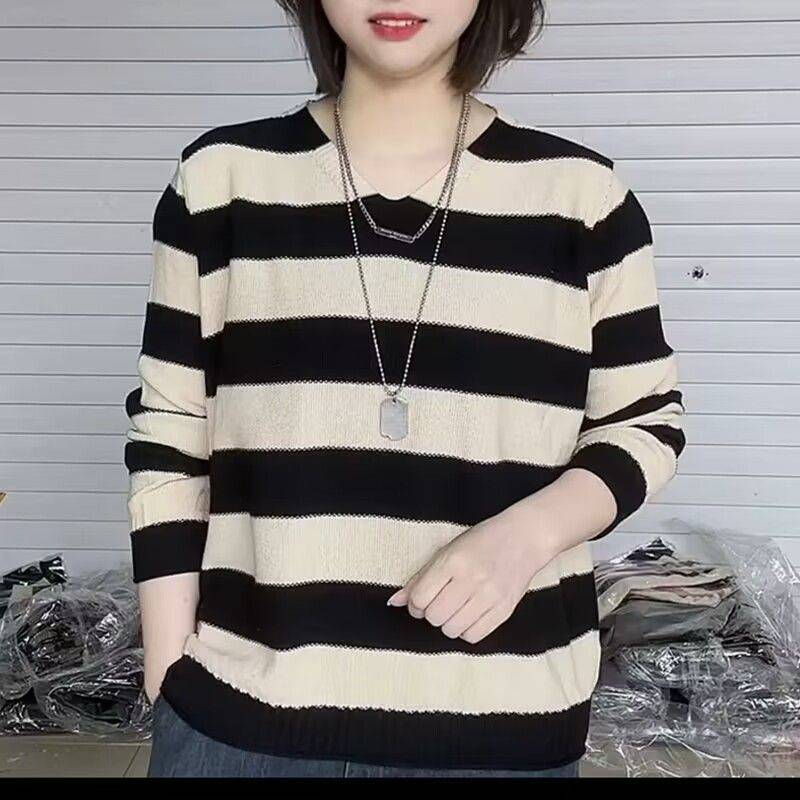 11分鐘前2024新款秋冬季寬鬆條紋針織毛衣女士打底衫 - 【團購優惠】任選4件 僅需NT$1598