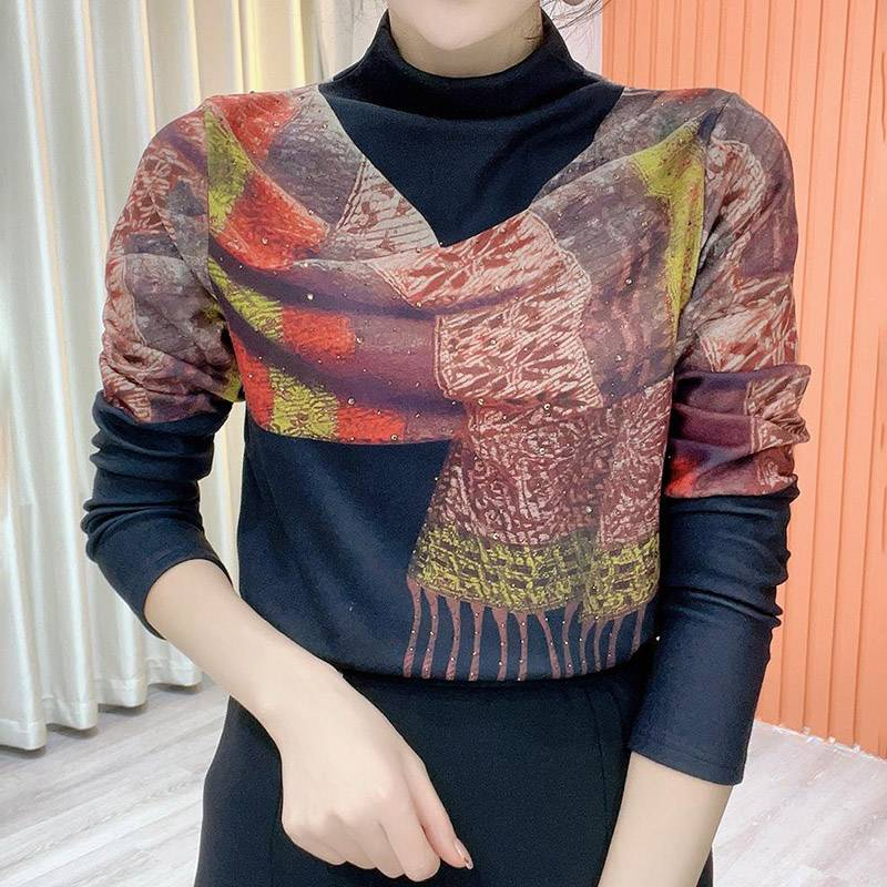 25分鐘前任選買1送1,設計感印花圍巾打底衫,時尚百搭,減齡遮肉顯瘦,內裡德絨保暖不紮膚, 每個色都好看! - 【買一送一】 二入組,NT$1098均價549/1件