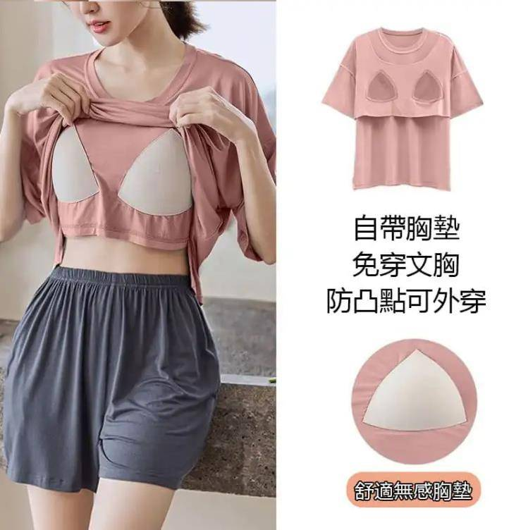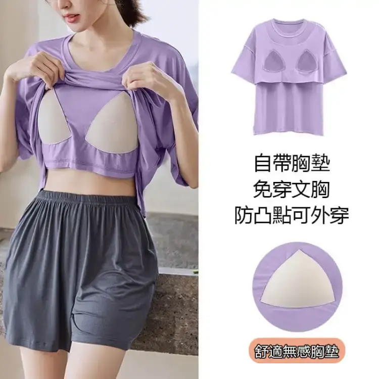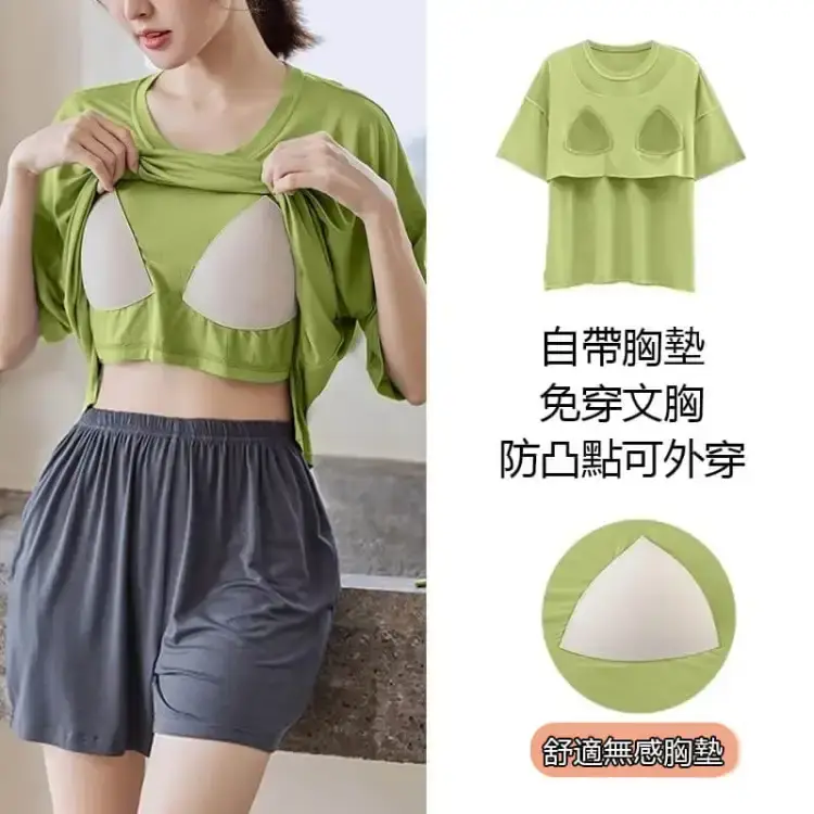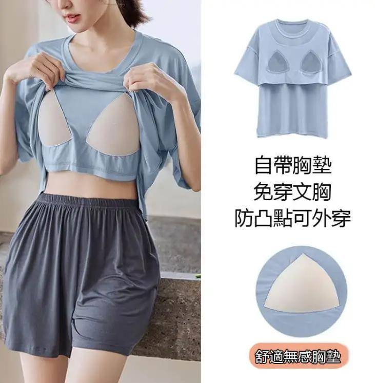 半小時前帶胸墊睡衣防走光睡衣女夏季短袖短褲薄款寬鬆家居服裝 - 【買二送二】 4入組 NT$1498【均價NT$374】