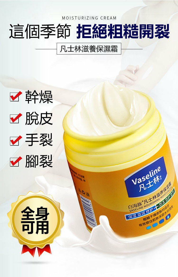4分鐘前醫師推薦【凡士林滋潤補水保濕霜】#買三送二 到手五盒 一抹即潤 瞬間吸收!保濕修護 清爽不油膩 全身都能用。可以當面霜,護手霜,身體乳使用 - 【買四送三】到手7瓶-NT$1099